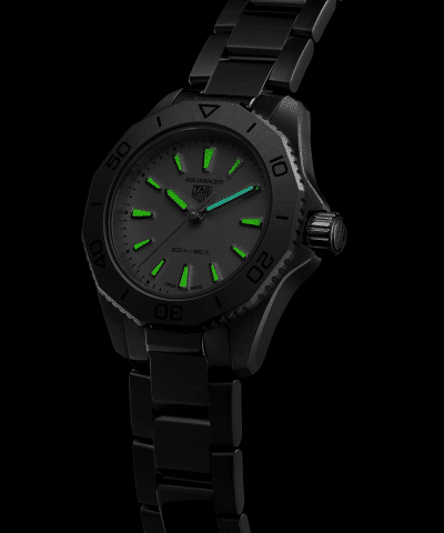 Super-LumiNova er et selvlysende materiale som absorberer lys og sender det ut i mørket, noe som gir utmerket lesbarhet av klokkens indikasjoner i forhold med lite eller ingen lys. TAG Heuer bruker vanligvis Super-LumiNova på sine eksklusive klokker, inkludert Aquaracer Professional-serien.