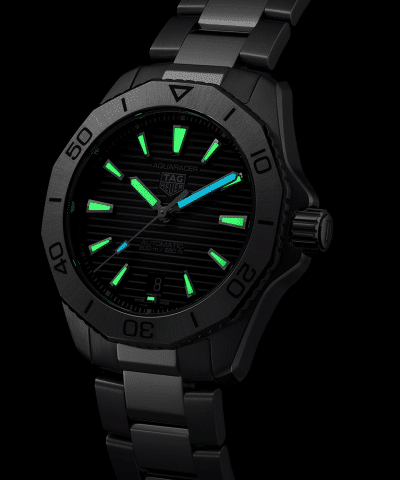 Super-LumiNova er et selvlysende materiale som absorberer lys og sender det ut i mørket, noe som gir utmerket lesbarhet av klokkens indikasjoner i forhold med lite eller ingen lys. TAG Heuer bruker vanligvis Super-LumiNova på sine eksklusive klokker, inkludert Aquaracer Professional-serien.