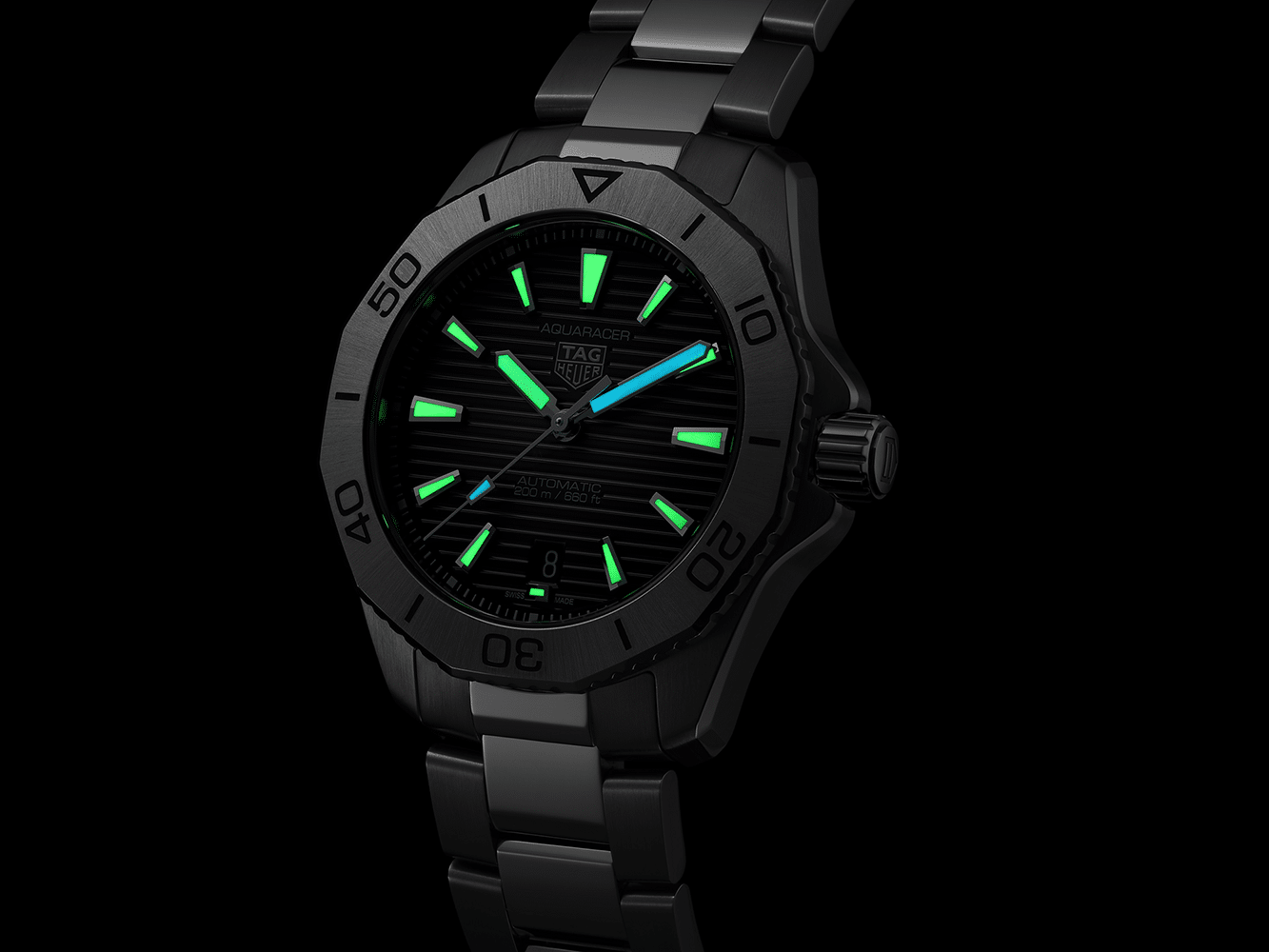 Super-LumiNova er et selvlysende materiale som absorberer lys og sender det ut i mørket, noe som gir utmerket lesbarhet av klokkens indikasjoner i forhold med lite eller ingen lys. TAG Heuer bruker vanligvis Super-LumiNova på sine eksklusive klokker, inkludert Aquaracer Professional-serien.