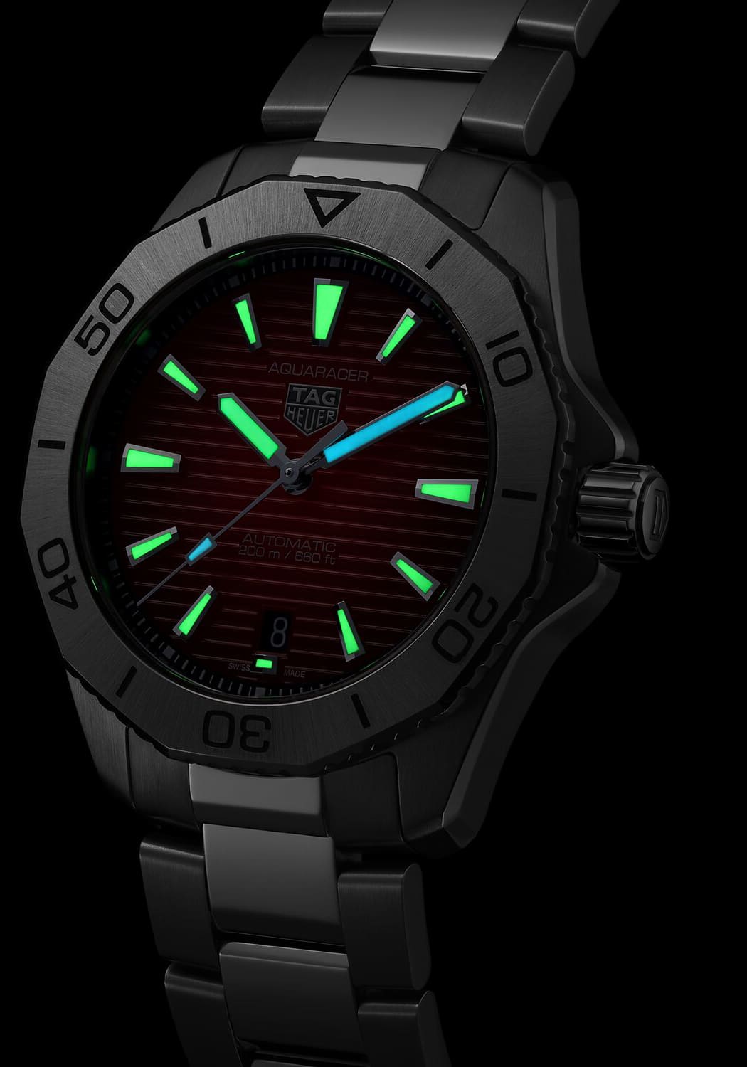 Super-LumiNova er et selvlysende materiale som absorberer lys og sender det ut i mørket, noe som gir utmerket lesbarhet av klokkens indikasjoner i forhold med lite eller ingen lys. TAG Heuer bruker vanligvis Super-LumiNova på sine eksklusive klokker, inkludert Aquaracer Professional-serien.